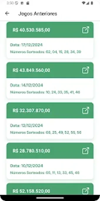 Resultados Loterias är en gratis app för Android som erbjuder användare möjligheten att enkelt följa och kontrollera resultaten av olika lotterier i Brasilien. Appen ger realtidsuppdateringar för populära lotterier som Mega-Sena, Quina och Loteca, vilket gör det enkelt att hålla sig informerad om senaste utfallen. Användare kan även ta del av tips och verktyg för att förbättra sina speltaktiker, inklusive förslag på nummerval för att öka sina chanser att vinna.